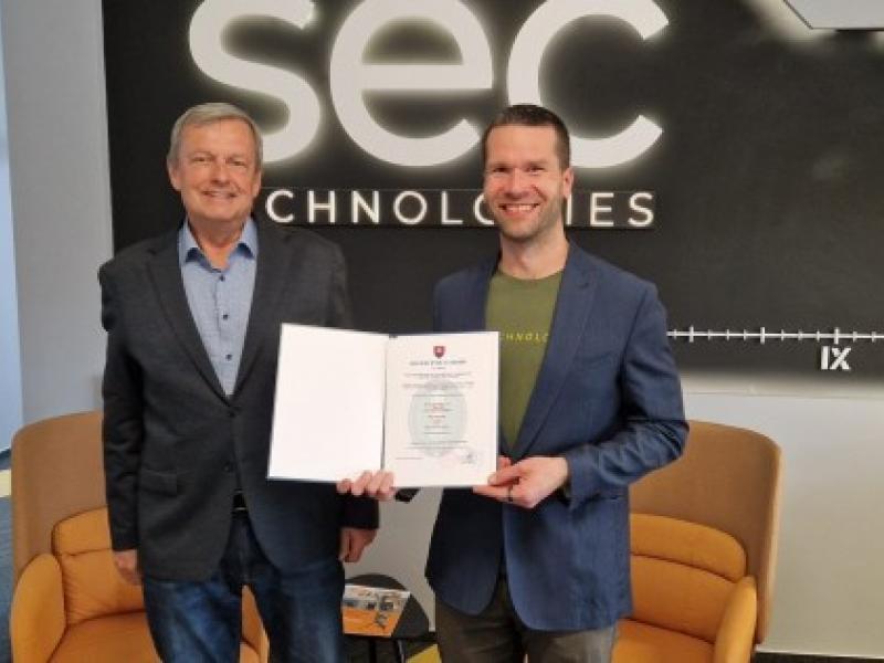 Odovzdávanie osvedčenia o zhode spoločnosti SEC Technologies, s.r.o. Liptovský Mikuláš