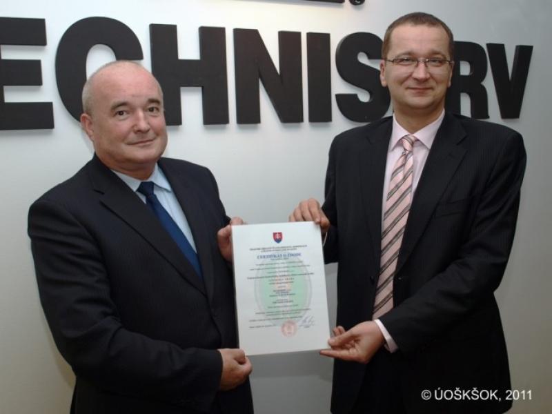 Odovzdávanie certifikátu spoločnosti Techniserv, spol. s r.o. Dňa 25. októbra 2011 riaditeľ Úradu pre obrannú štandardizáciu, kodifikáciu a štátne…